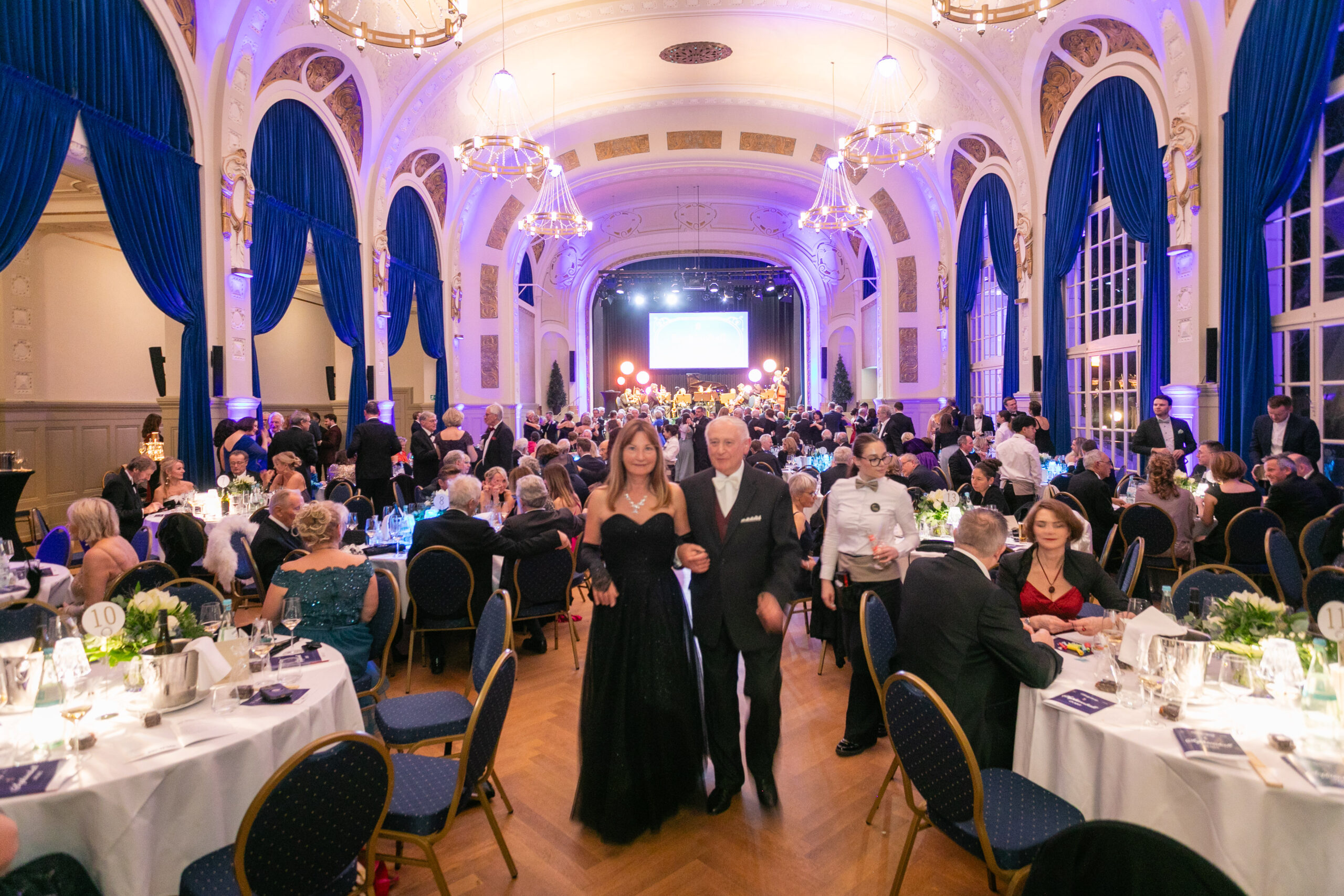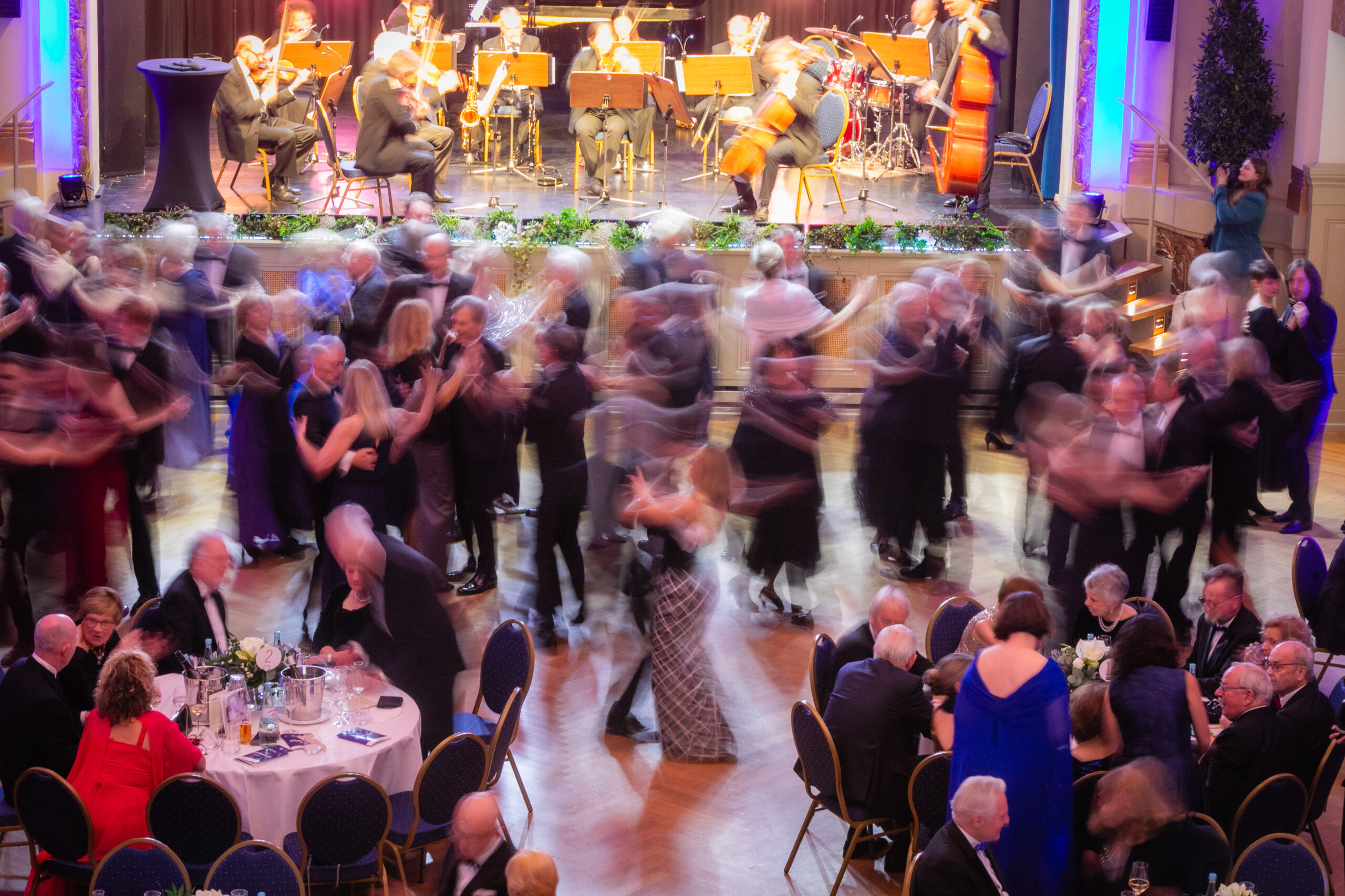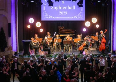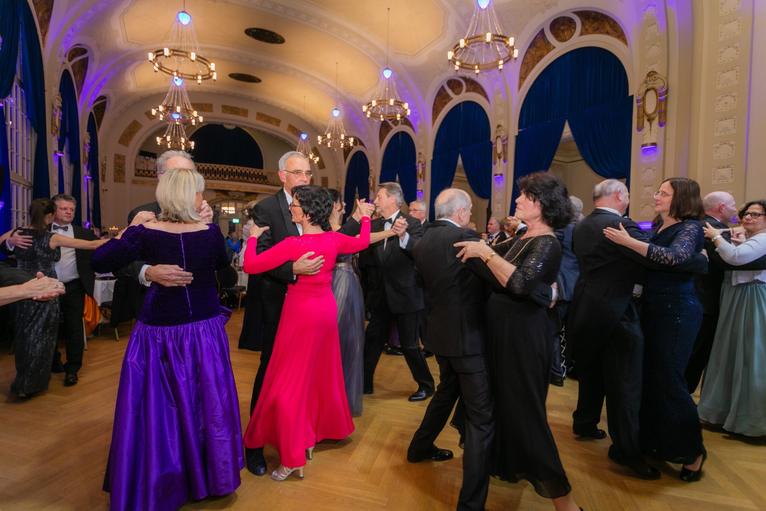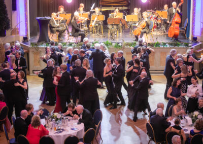 Als Martin Walter, Vorstandsmitglied und charmanter Moderator, nach Wiener Tradition mit den Worten „Alles Walzer!“ zur Eröffnung des Tanzes bat, folgten die Gäste voller Begeisterung – die Tanzfläche füllte sich im Nu. Das 12-köpfige Johann Strauß-Ballorchester aus Wiesbaden hielt den ganzen Abend die Gäste in Schwung.