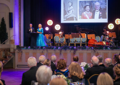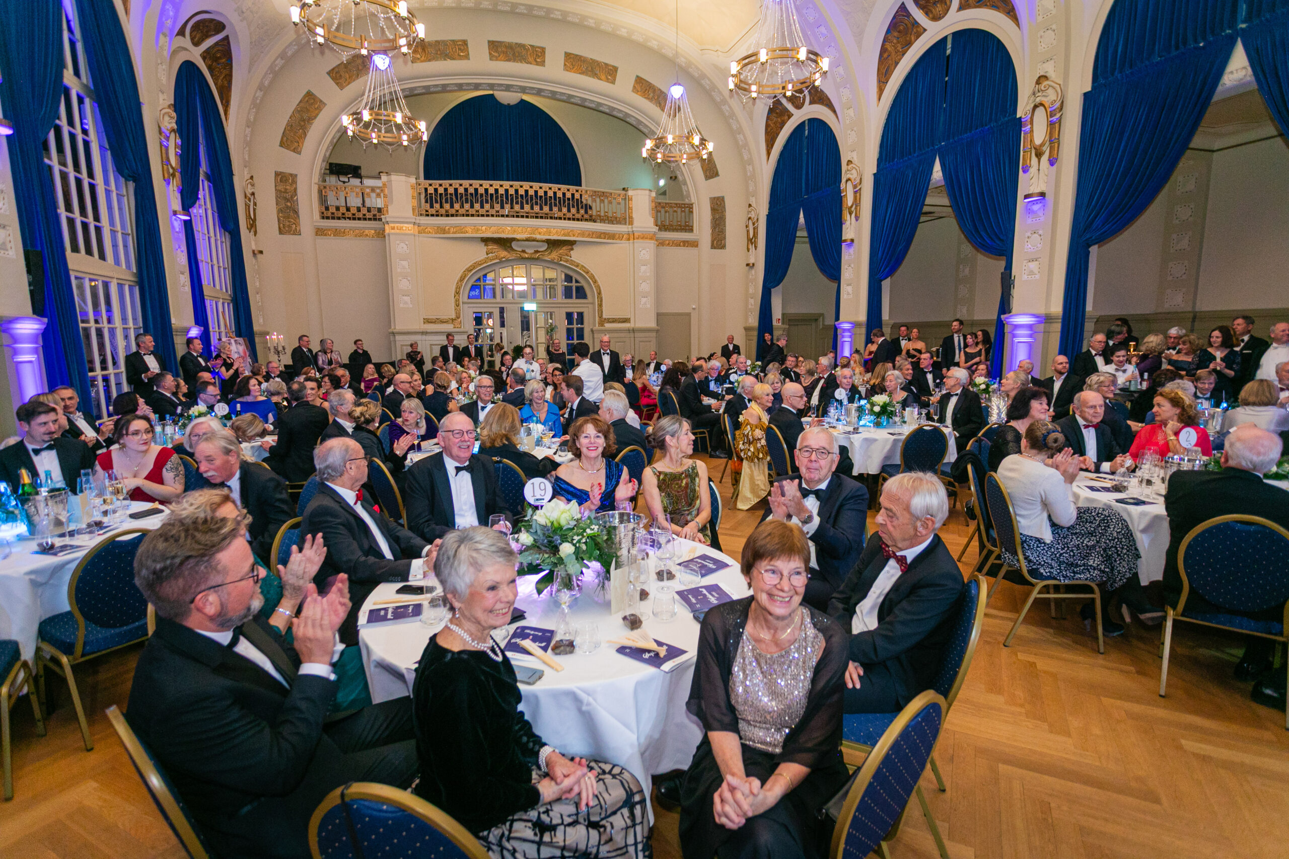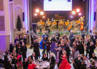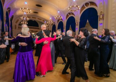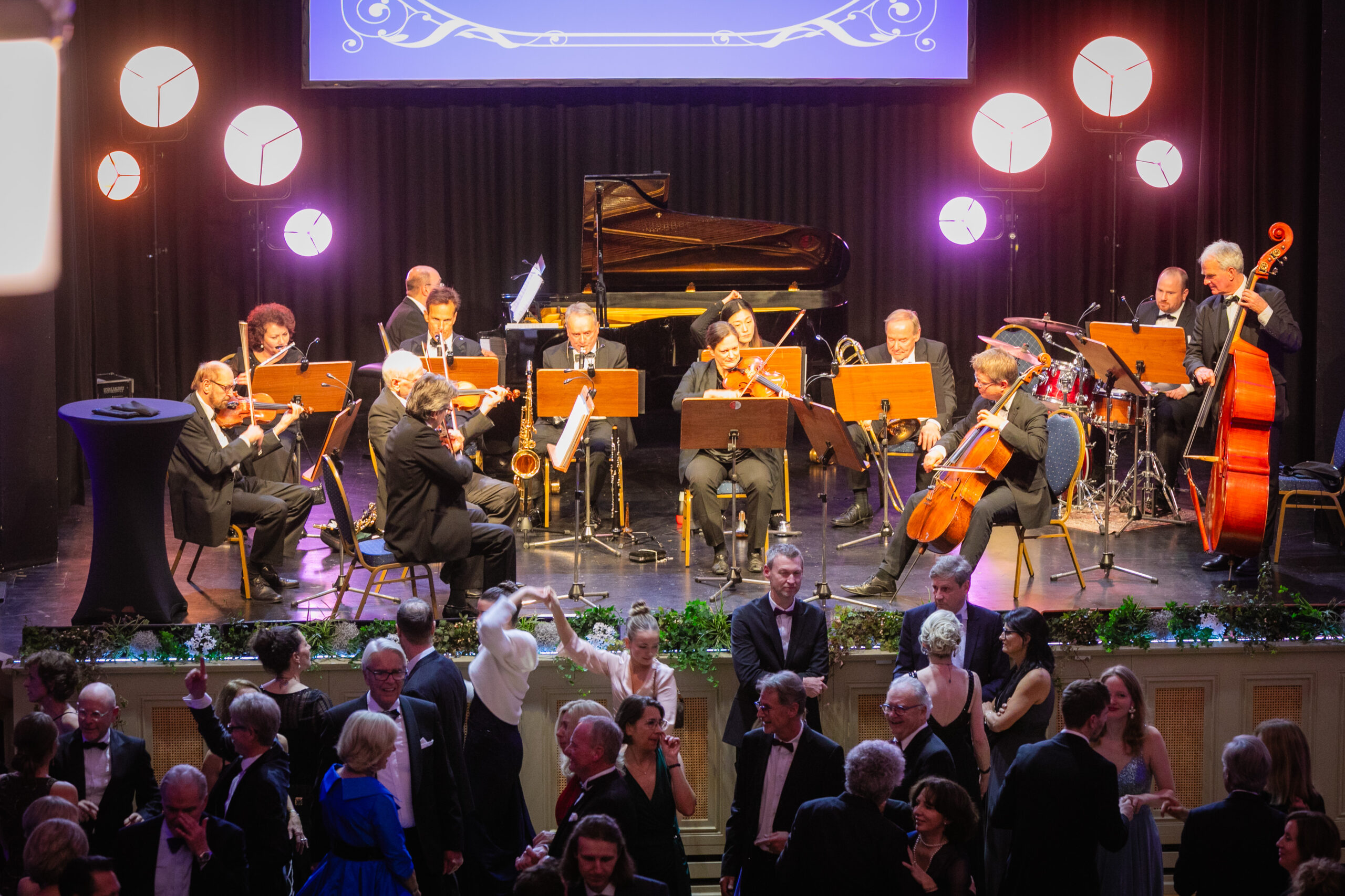 Als Martin Walter, Vorstandsmitglied und charmanter Moderator, nach Wiener Tradition mit den Worten „Alles Walzer!“ zur Eröffnung des Tanzes bat, folgten die Gäste voller Begeisterung – die Tanzfläche füllte sich im Nu. Das 12-köpfige Johann Strauß-Ballorchester aus Wiesbaden hielt den ganzen Abend die Gäste in Schwung.